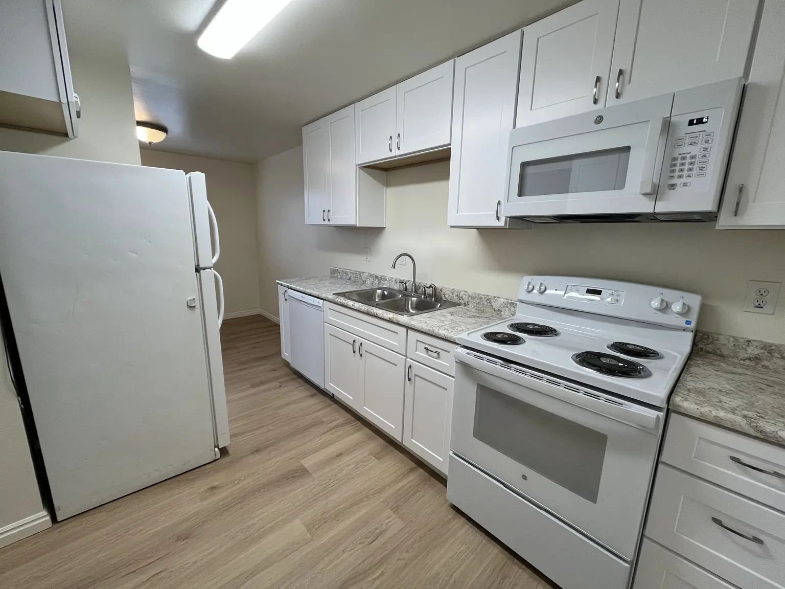 AMENITIES: 1st level apartment. Newly renovated with new kitchen cabinets, LVP floors & carpet! Dishwasher & w/d hookups. 2 Parking spots